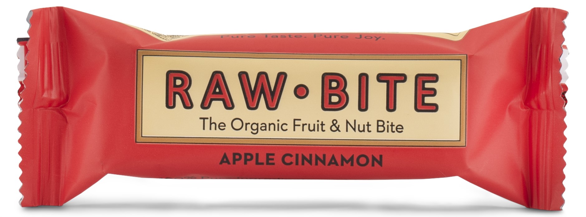 RAWBITE med smak av äpple och kanel tillverkas av 100% naturliga och ekologiska ingredienser. Det är en frukt och nötbar som är helt fri från mjölk, gluten, ägg, soja, tillsatt socker och konstgjorda smak- och färgämnen. Det är helt enkelt en nyttig bar som passar utmärkt att ha med sig i väskan eller på fikat!