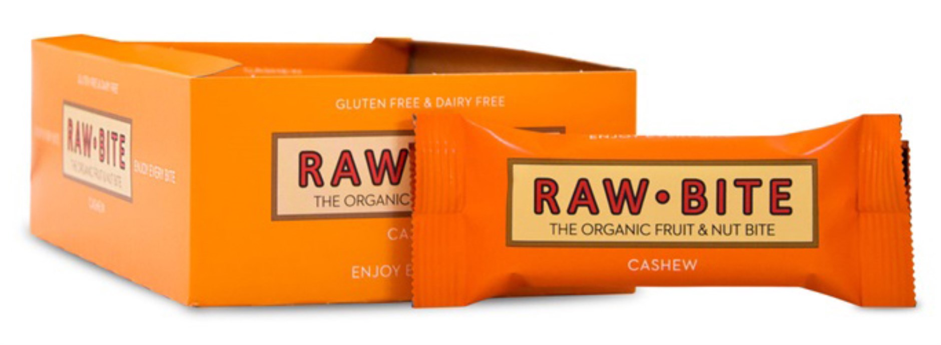 RAWBITE med cashew tillverkas av 100% naturliga, ekologiska och råa ingredienser. Det är en frukt och nötbar som är helt fri från mjölk, gluten, ägg, soja, socker och konstgjorda smak- och färgämnen. Det är helt enkelt en nyttig bar som passar utmärkt att ha med sig i väskan eller på fikat!