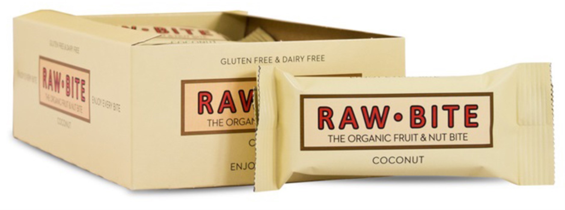 RAWBITE med kokos tillverkas av 100% naturliga, ekologiska och råa ingredienser. Det är en frukt och nötbar som är helt fri från mjölk, gluten, ägg, soja, socker och konstgjorda smak och färgämnen. Det är helt enkelt en nyttig bar som passar utmärkt att ha med sig i väskan eller på fikat!