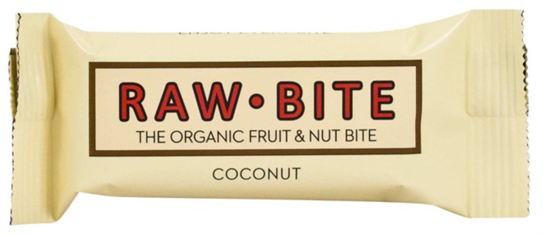RAWBITE med kokos tillverkas av 100% naturliga, ekologiska och råa ingredienser. Det är en frukt och nötbar som är helt fri från mjölk, gluten, ägg, soja, socker och konstgjorda smak och färgämnen. Det är helt enkelt en nyttig bar som passar utmärkt att ha med sig i väskan eller på fikat!