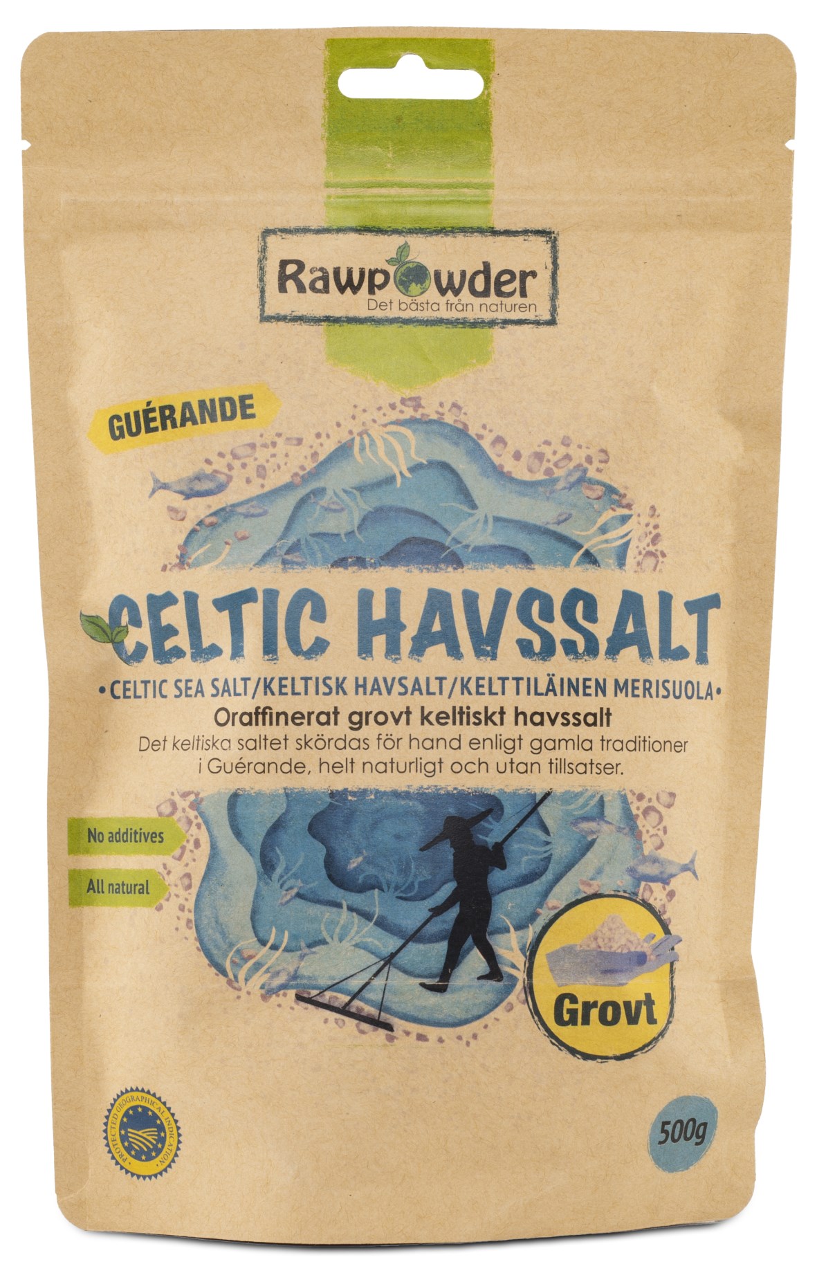 RawPowder Celtic Grovkornigt Havssalt är en naturlig källa till mineraler. Det keltiska havssaltet handskördas längs Guérandes kuster i Frankrike, enligt gamla traditioner som hedrar naturen. Havssaltet, som även kallas Celtic Sea Salt, har en naturlig grå färg och grovkornig struktur. Saltet är tillverkat utan kemisk behandling, tillsatser eller blekningar. Dess användningsområden sträcker sig över matlagning, saltlösningar och som en naturlig ersättning för elektrolyter. Märkningen IGP (Protected Geographical Indication) står som en garanti för saltets ursprung och dess kvalitet.