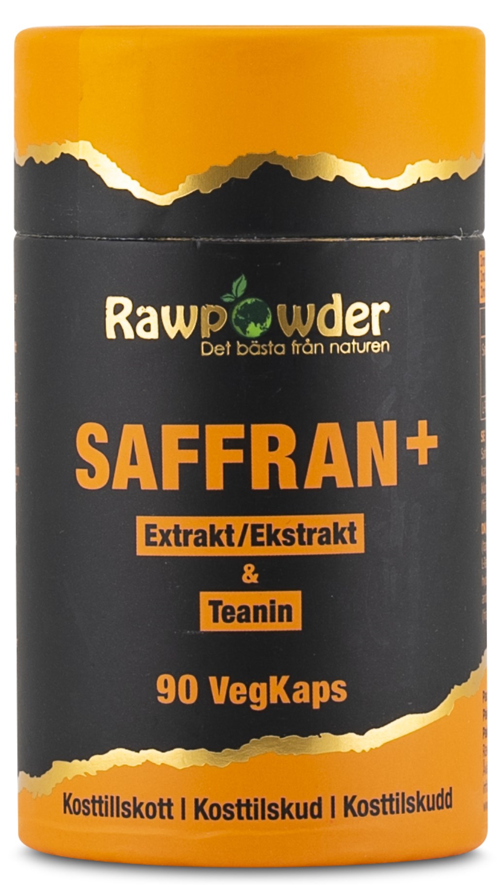 RawPowder Saffran+ Extrakt är ett kosttillskott i praktiska kapslar, innehållande saffransextrakt utvunnet från pistillerna i saffrankrokusen. Eftersom varje blomma endast producerar några få pistiller är saffran en av världens mest exklusiva kryddor. Saffran är känd för sin distinkta smak, röda färg och speciella egenskaper, och har använts i århundraden både i matlagning och inom olika kulturer. RawPowder Saffran+ Extrakt innehåller SafraSOL™, ett standardiserat extrakt med en garanterad mängd aktiva ingredienser: 10 % Krokiner, som ger saffran dess gula färg, och 2 % Safranal, som bidrar till den unika smaken och doften. Produkten är dessutom berikad med aminosyran L-teanin.