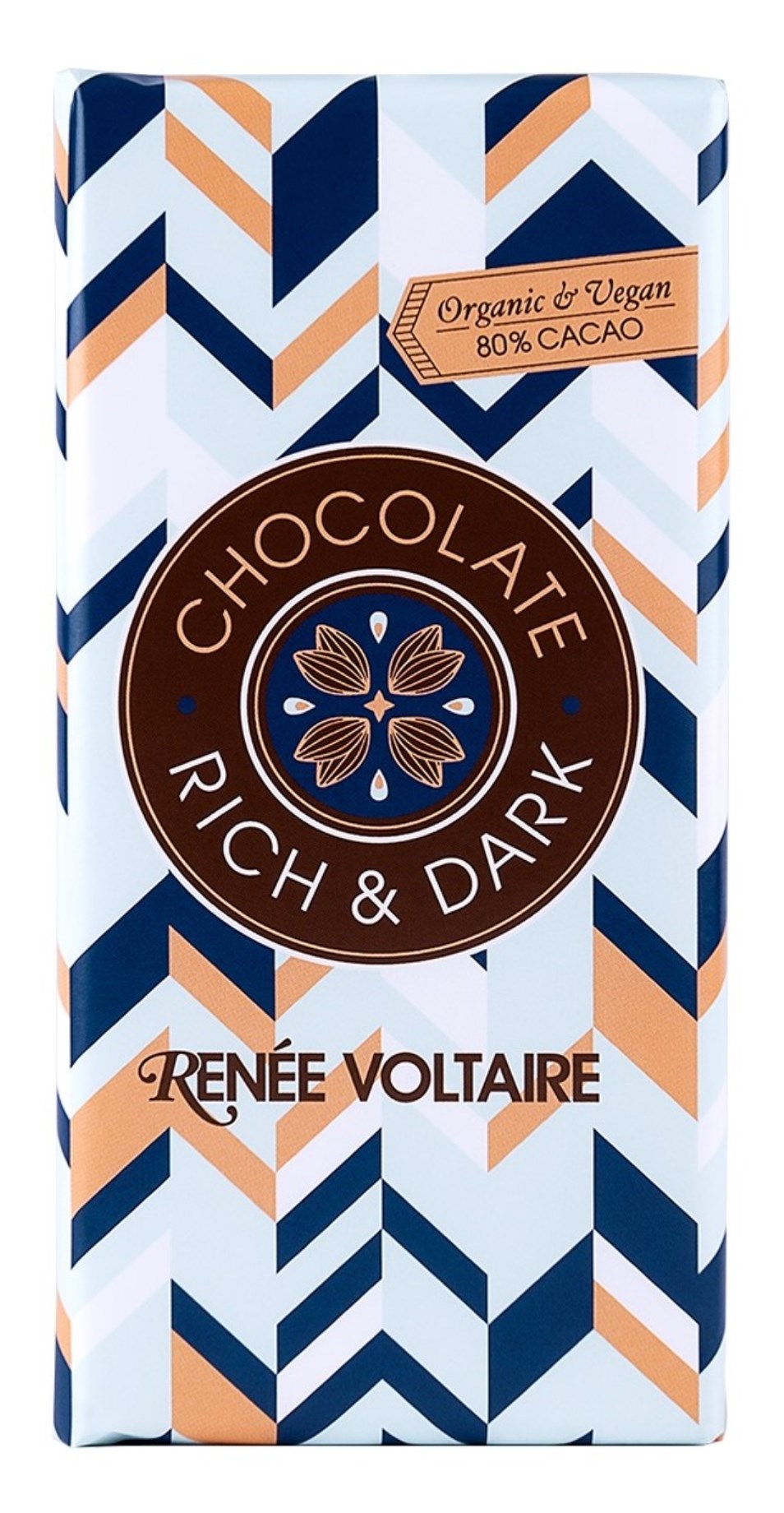 Njut av Renee Voltaire Mörk Chokladkaka 80 % – en mörk och fyllig choklad som är vegansk och ekologisk. 80 % kakao från Nord- och Sydamerika och med äkta bourbonvanilj. Sötad enbart med naturligt kokossocker, balanserar den perfekt mellan att vara varken för sträv eller för söt, för en underbar smakupplevelse.