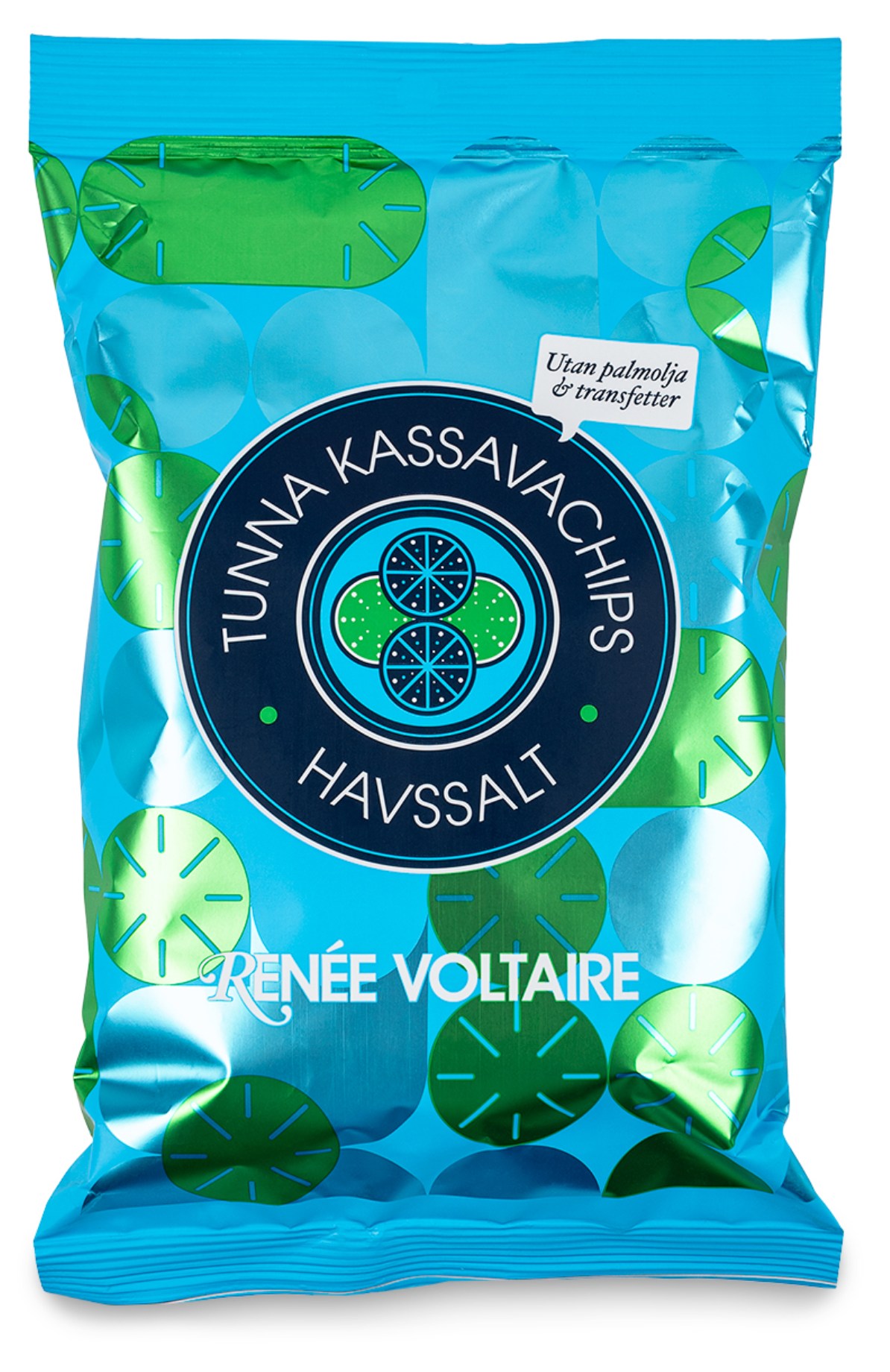 Vill du ha något annat än vanliga chips? Prova Renee Voltaire Tunna Kassavachips med smak av havssalt! Dessa chips är extra spröda, krispiga och tunna, gjorda på den sockersnåla kassavaroten! Chipsen har en lite nötig smak. De är lika goda att dippa i röror som att äta direkt ur påsen. Dessutom passar de lika bra till filmmyset som till minglet. Kassavachipsen görs i Sydamerika där de plockas för hand. När chipsen friteras används en särskilt utvald solrosolja, med hög andel oljesyra och ungefär en tiondel så låg andel omega-6 som i traditionell solrosolja. Detta gör att solrosoljan blir stabil i höga temperaturer och inte bildar några transfetter.