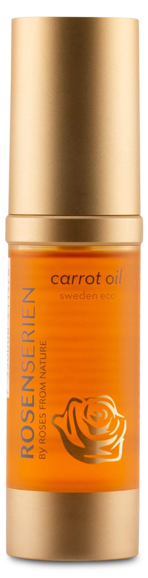 Rosenseriens morotsolja Carrot Oil ger din hud ny näring och en härlig lyster. Morotsoljan innehåller även avokado-och solrosolja och vetegroddar. Den går snabbt in i huden och passar utmärkt som ansiktsolja. Morotsolja kan användas av alla hudtyper, även känsliga. Droppa några droppar på handen och massera in i ansiktets hud. Carrot Oil är dryg, några droppar räcker för att få effekt och för att undvika en kladdig känsla.