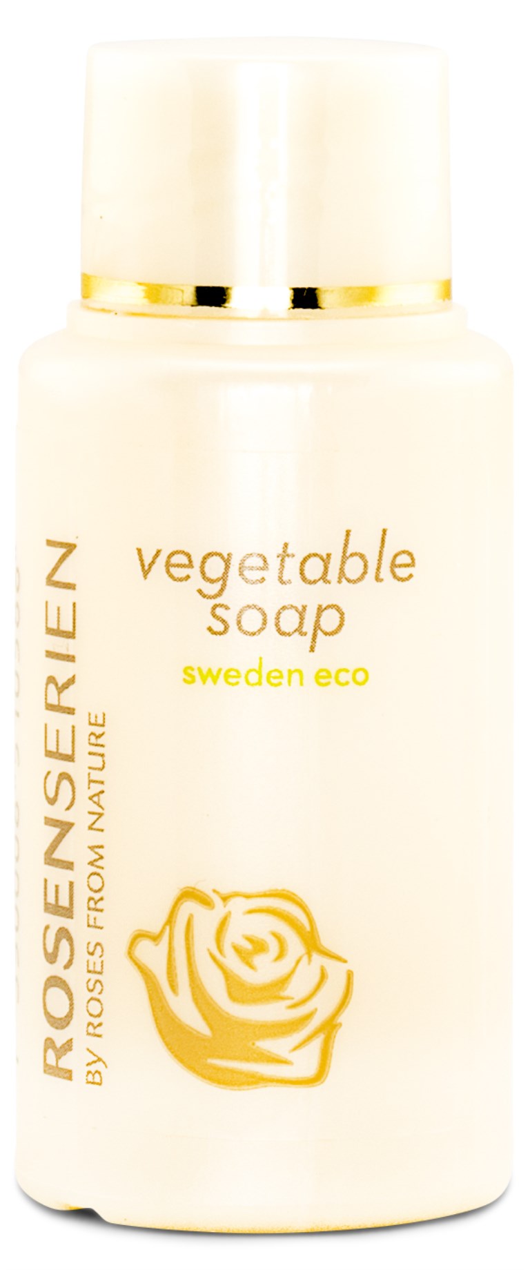 Rosenserien Vegetable Soap är en helt vegetabilisk tvål med naturligt och ekologiskt innehåll. Den fungerar utmärkt på alla hudtyper och även den mest känsliga. Tvålen innehåller verksamma ämnen som hjälper till att återfukta din hud och ger även lödder i saltvatten. Det har inte tillsatts något vatten i produkten och då den är väldigt högkoncentrerad behövs bara en enda droppe för tvätt av händerna.