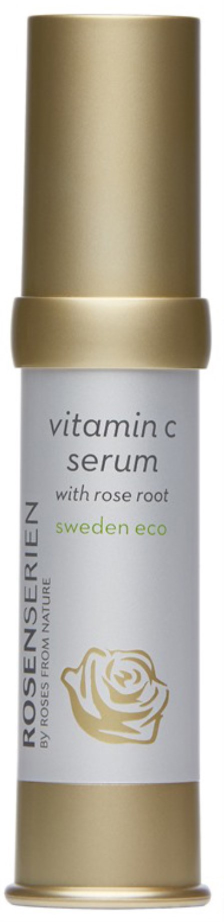 Rosenseriens serum med vitamin C och rosenrot verkar på djupet och kan med fördel kombineras med fuktkräm/vitaminkur. Med serumet så får du tillbaka din spänst och lyster i huden och den får även ny energi. Den går att använda på solskadad hud för att få en återuppbyggande effekt. Serumet kan även användas på pigmentfläckar för att bleka dem, dock så är det inte snabbverkande utan det tar ett tag innan resultat syns.