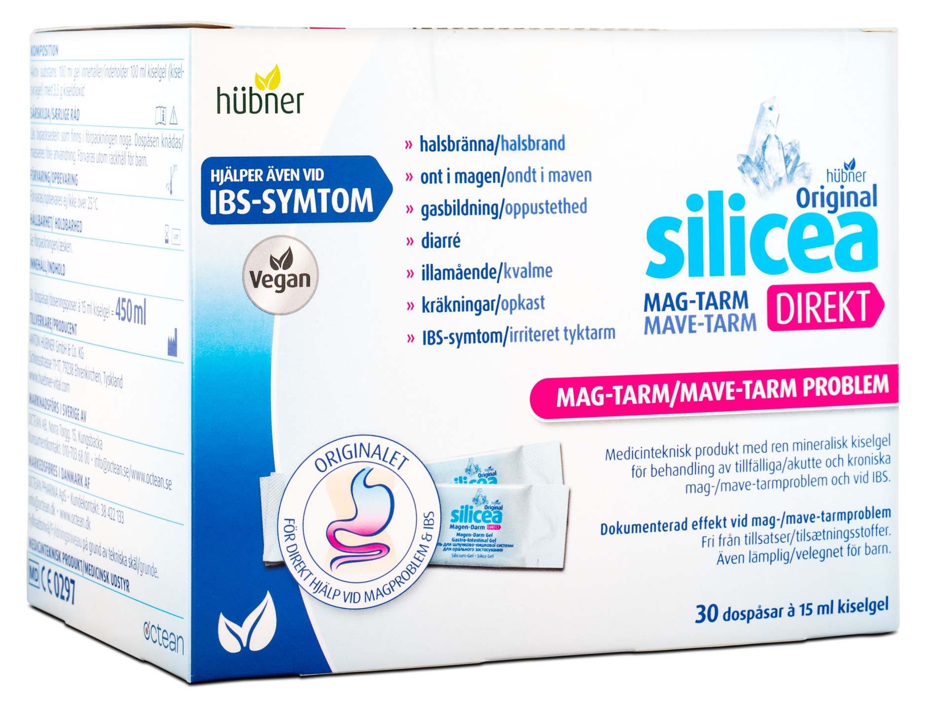 Om du lider av uppblåst mage eller ofta känner dig svullen kan Silicea Mage Tarm Direkt lindra dina besvär. Speciellt om du ofta har problem med orolig mage eller mag- och tarmproblem som IBS och halsbränna så kan Silicea Mage Tarm Direkt vara effektivt. Produkten är helt naturlig och utan tillsatser eller konserveringsmedel. Den består av kiselgel i form av finfördelad kisel, syre och vatten som effektivt binder gaser i magen. Gelen skyddar även slemhinnorna i mage och tarm vilket motverkar att problem uppstår. Denna gel kan du använda vid tillfälliga problem eller som en långvarig behandling för att undvika gasbildning och andra tarmproblem.