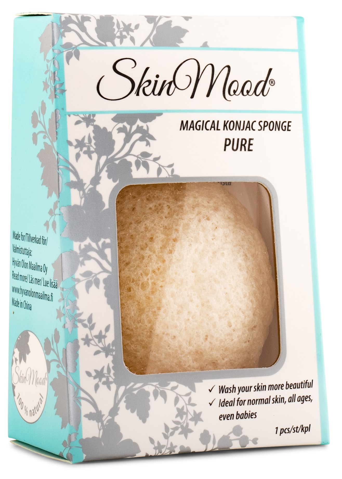 SkinMood Konjac Pure Facial Sponge är en rengöringssvamp av konjacrot som rengör din hud skonsamt och effektivt. Konjacrot har en naturligt balanserande effekt på hudens pH-värde samtidigt som den ger huden näring. Tack vare den lätt exfolierande texturen gör den huden silkeslen och tar fram din naturliga lyster. Du kan använda svampen som den är, fuktad med vatten eller tillsammans med din vanliga ansiktstvätt. Använd 1-2 gånger per dag för en mjuk och strålande hy!