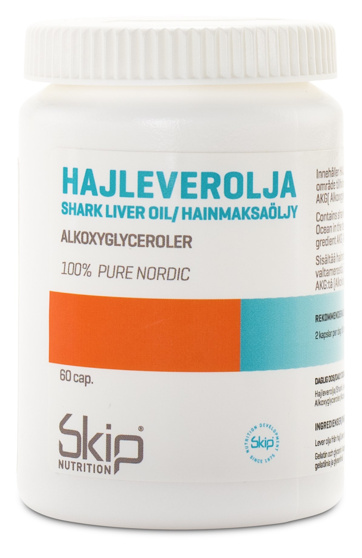 Hajleverolja är rikt på AKG, och en av få källor till denna substans. Skips Hajleverolja är ren olja från godkända hajarter och utvecklad för dig som lever ett aktivt liv.