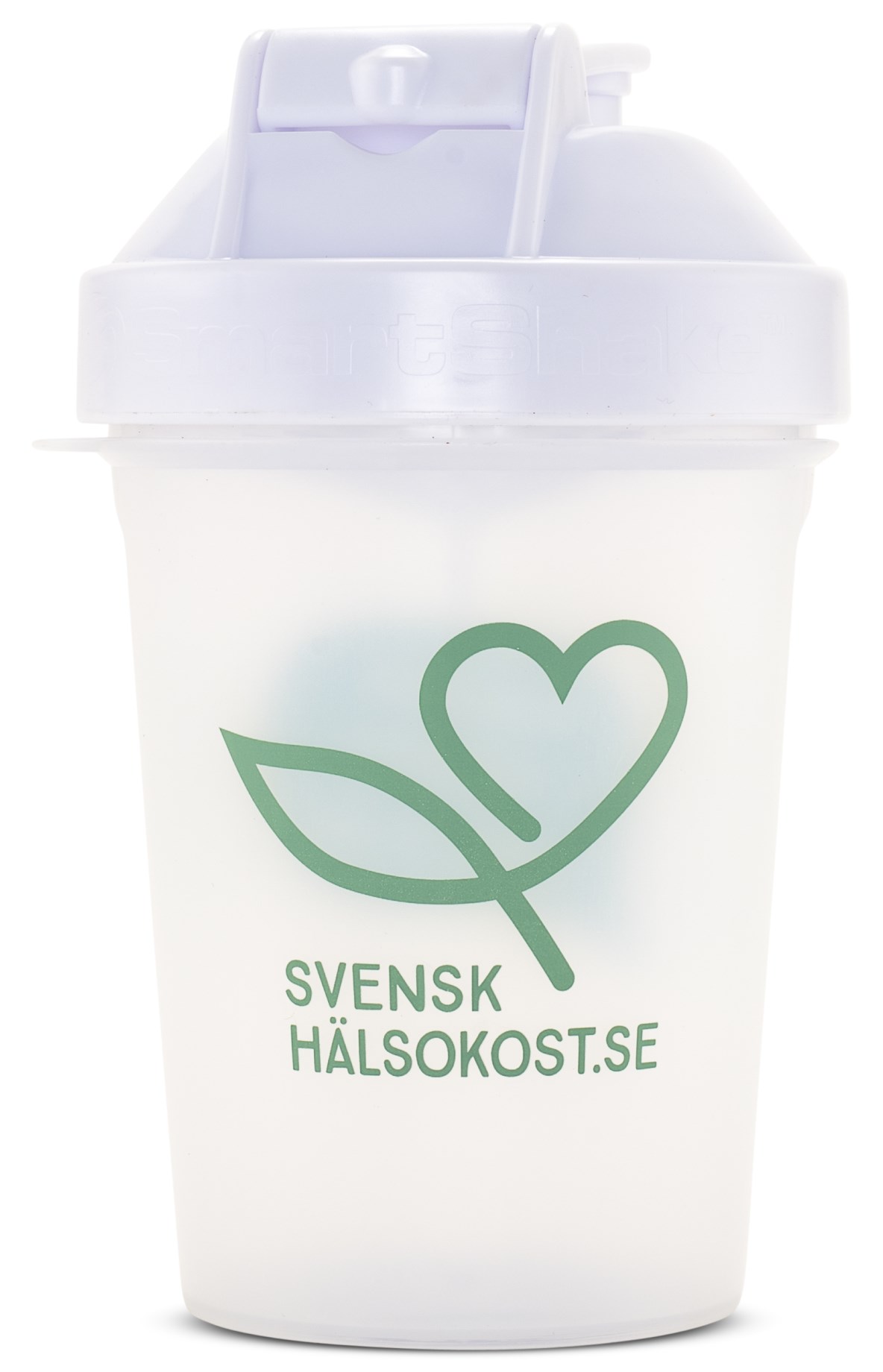 Med SmartShake™ Lite Svensk Hälsokost 400 ml blandar du enkelt din proteinshake efter träningen. Tack vare det praktiska mixernätet på insidan så slipper du klumpar i din dryck. Mixernätet sitter på plats innanför locket och fungerar även vid tjockare konsistenser som ägg eller pannkaksmix. Förutom dessa fördelar så har SmartShake™ Lite Svensk Hälsokost 400 ml inga små lösa delar som skramlar eller lätt försvinner. På utsidan finns en karbinhake som gör att du lätt kan fästa din shaker i väskan eller sätta fast dina nycklar i. När du druckit upp din dryck så kan den diskas i diskmaskin. Shakern rymmer 400 ml och plasten är lätt genomskinlig så att du enkelt kan se om din dryck är färdigblandad.