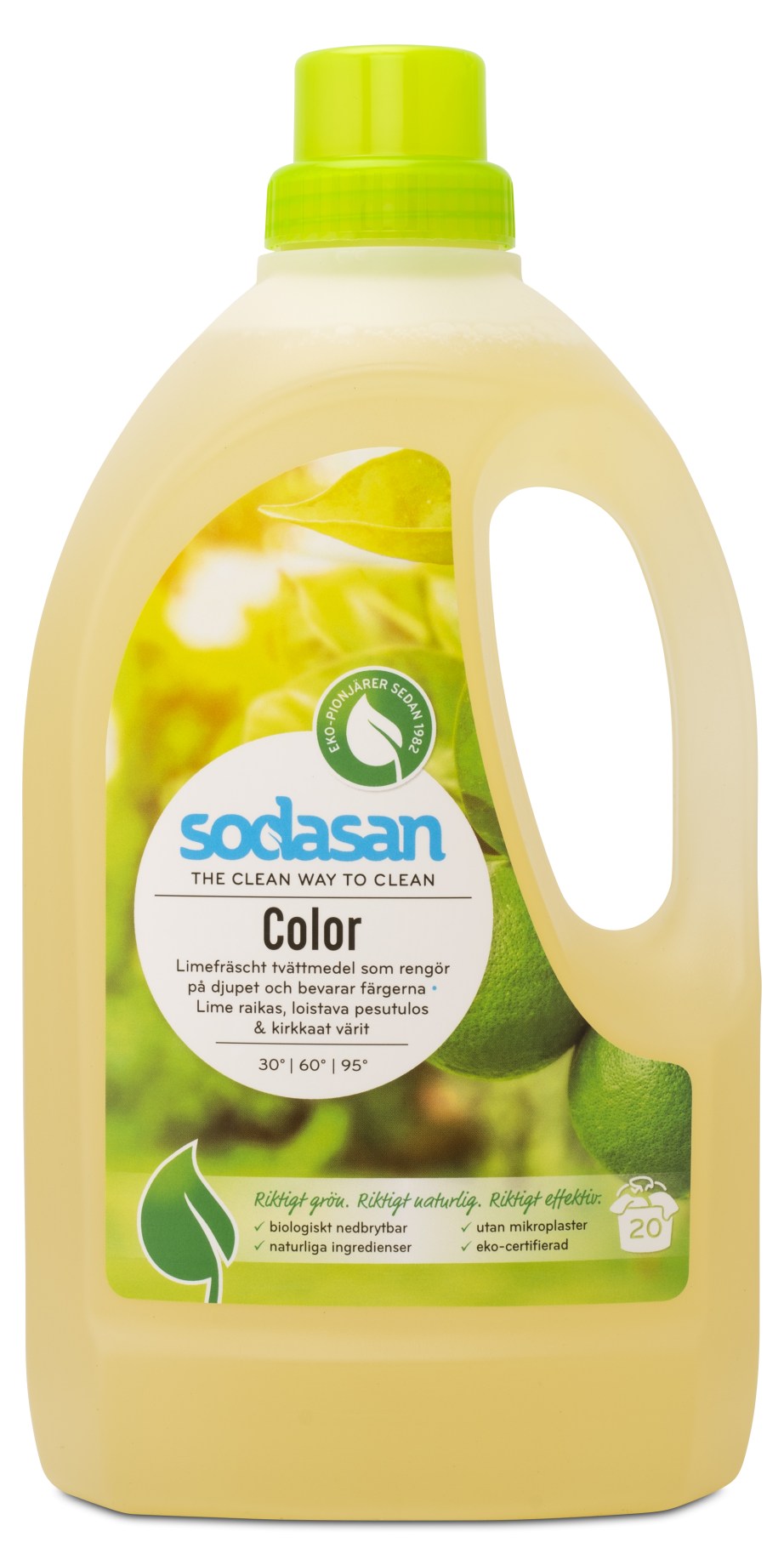 Sodasan Tvättmedel Lime har en fräsch doft av citrus som kommer från eteriska oljor. Passar till all typ av tvätt och är dermatologiskt testad.