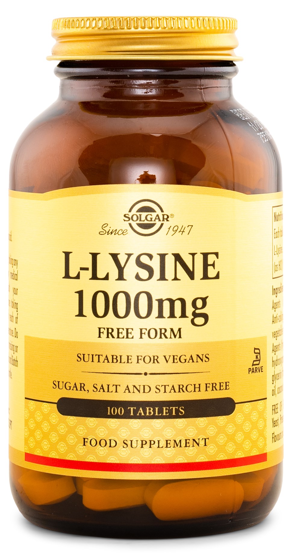 Solgar L-lysine innehåller 1000 mg lysin per tablett, en aminosyra som behövs för uppbyggnaden av kollagen i kroppen. Kollagen är det protein som bygger upp vår bindväv, så som hår, hud och naglar. Dessutom medverkar den till elasticiteten i huden, och bidrar till en normal benstomme. L-lysin är därför ett utmärkt tillskott för dig som vill ta lite extra hand om hår, hud och naglar.
