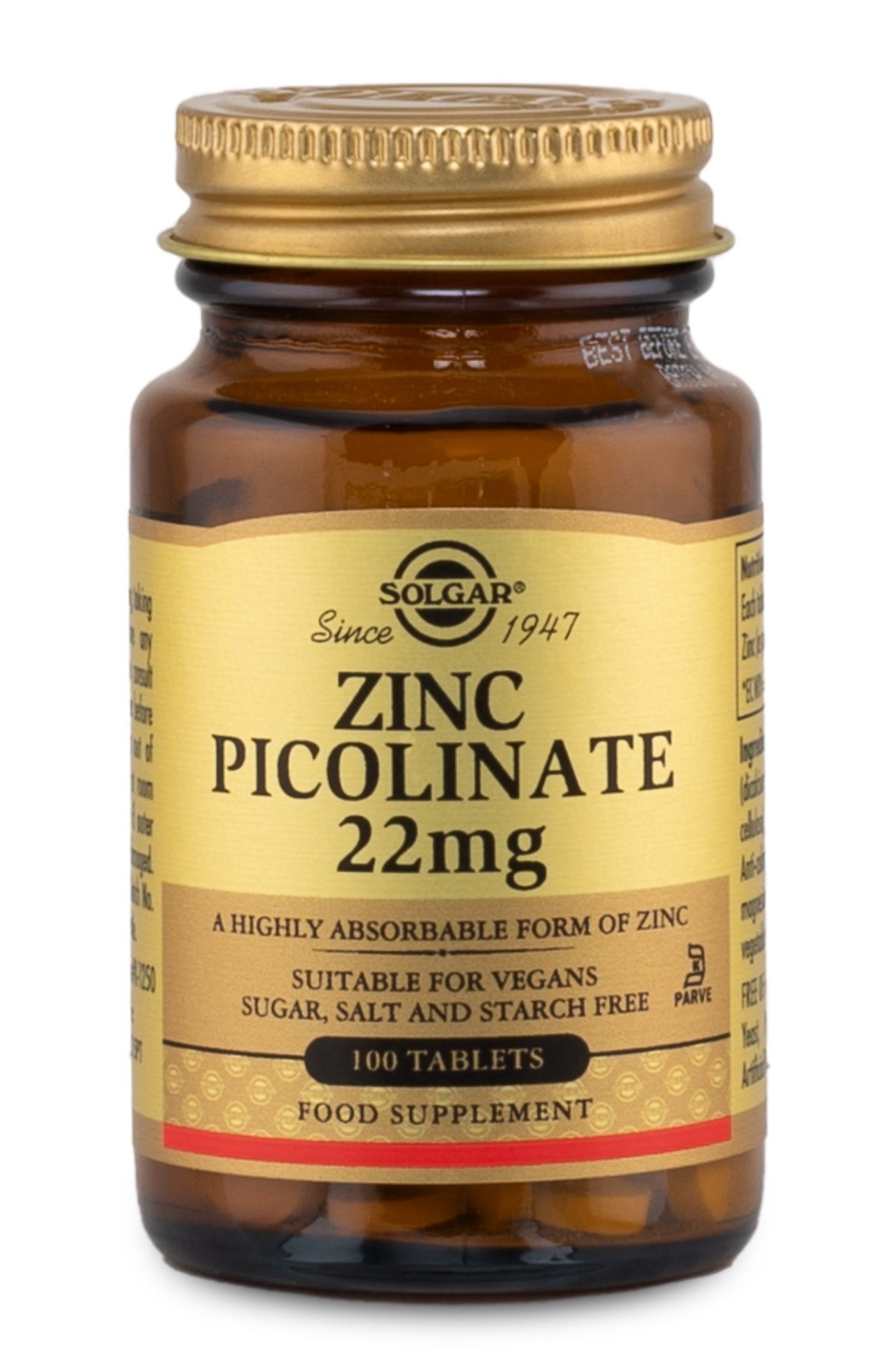 Solgar Zinc Picolinate är ett kvalitetstillskott med mineralet zink i lättupptagbar form. En tablett ger hela 22 mg zink i formen zinkpikolinat. Används som ett dagligt zinktillskott när du vill fylla på med extra zink.