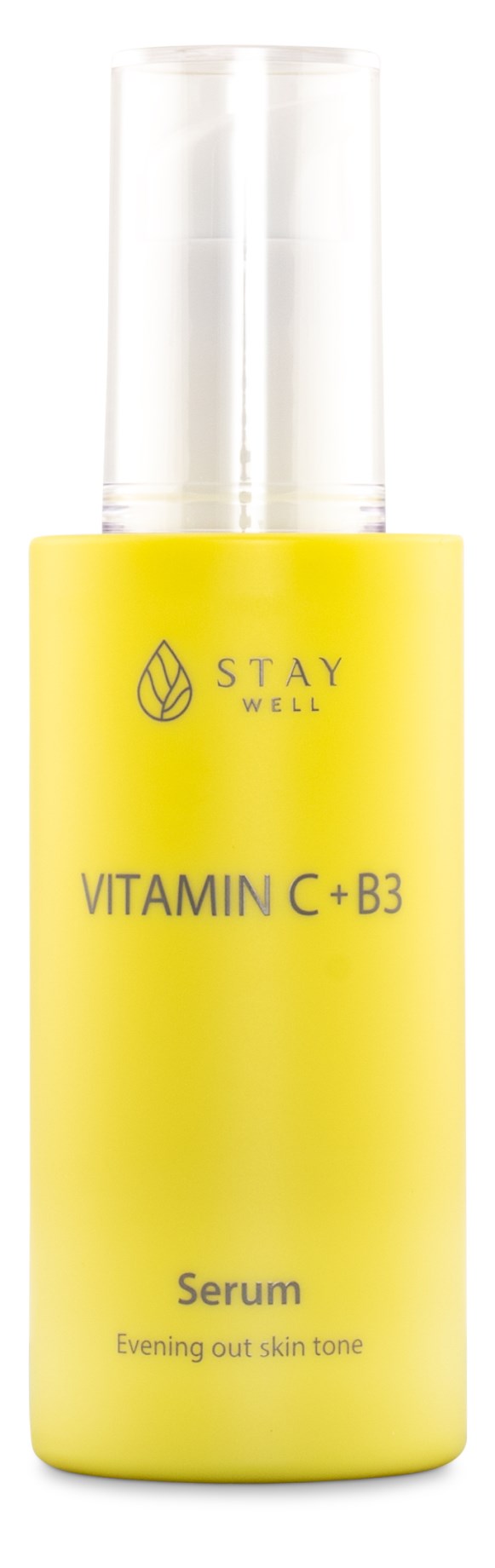 StayWell Vitamin C+B3 Niacinamide Serum är ett serum för ansiktet som ger intensiv fukt och verkar hudutjämnande. Med sitt rika innehåll av vitamin C får din hy ny lyster och huden känns fräsch och elastisk. Vitamin C bidrar bland annat till bildningen av kollagen. Dessutom innehåller serumet niacinamid som ger lyster och bidrar till hudens elasticitet. Passar att använda både morgon och kväll!
