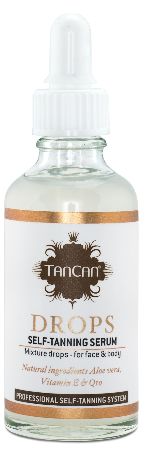TanCan Drops är ett smidigt sätt att förgylla din vanliga hudkräm till en touch av brun utan sol. Detta serum blandar sig väl med din hudkräm och ger den styrka på brun utan sol som du själv önskar. Huden får en naturligt solkysst hy inom loppet av 6-8 timmar.