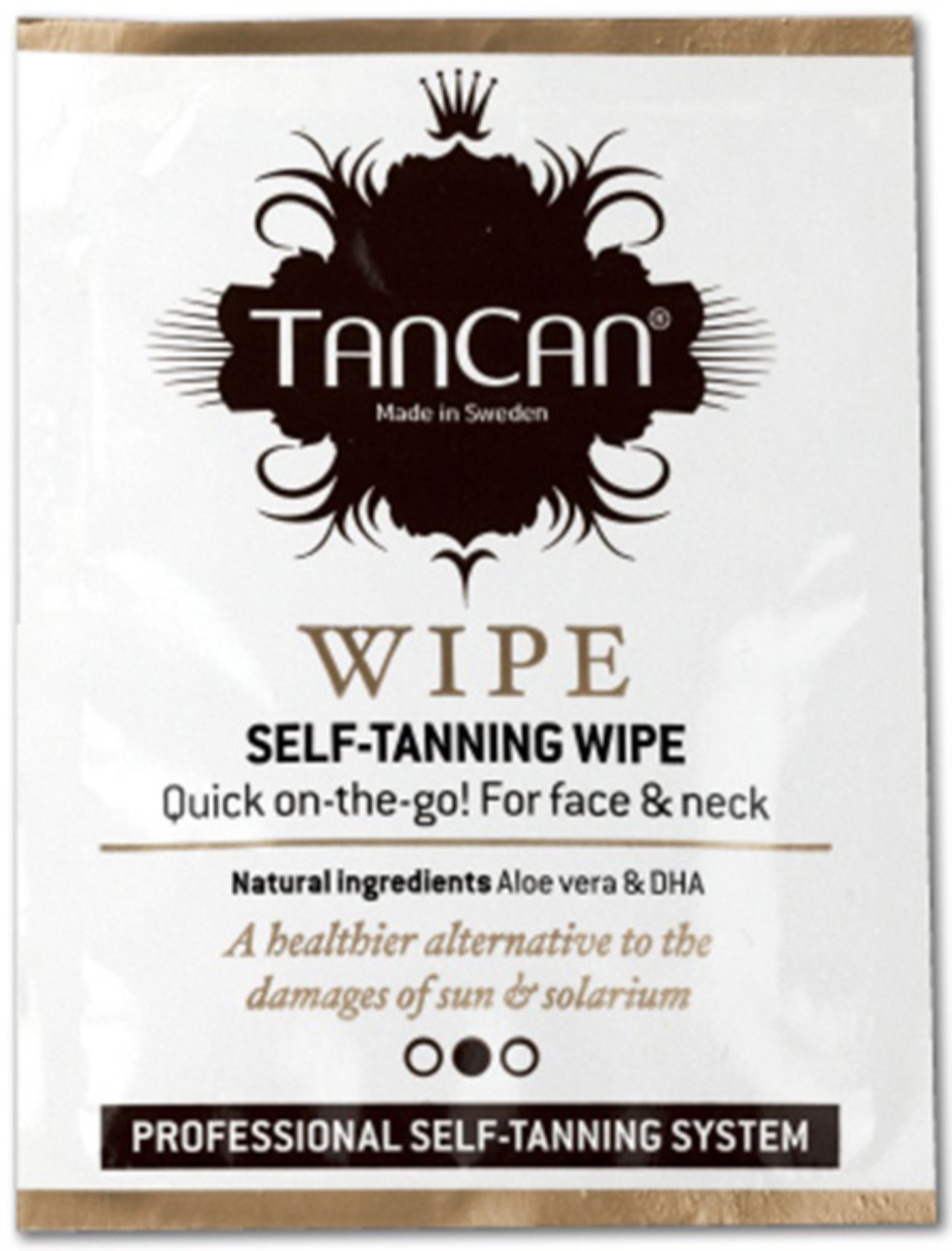 Nu kan du bli snabbt och enkelt brun på ett portabelt sätt! TanCan Wipe är nämligen en smidig self-tanning servett som ger en snabb solbrun hud utan att kladda. Servetten används på det område som du vill bli solbrun på och effekten kommer inom tre timmar. Resultatet blir en gyllene solbrun hud som samtidigt vårdas av välgörande aloe vera för extra spänst och återfuktning. Servetterna är små och praktiska vilket för att du enkelt kan ta med dem när du är på språng.