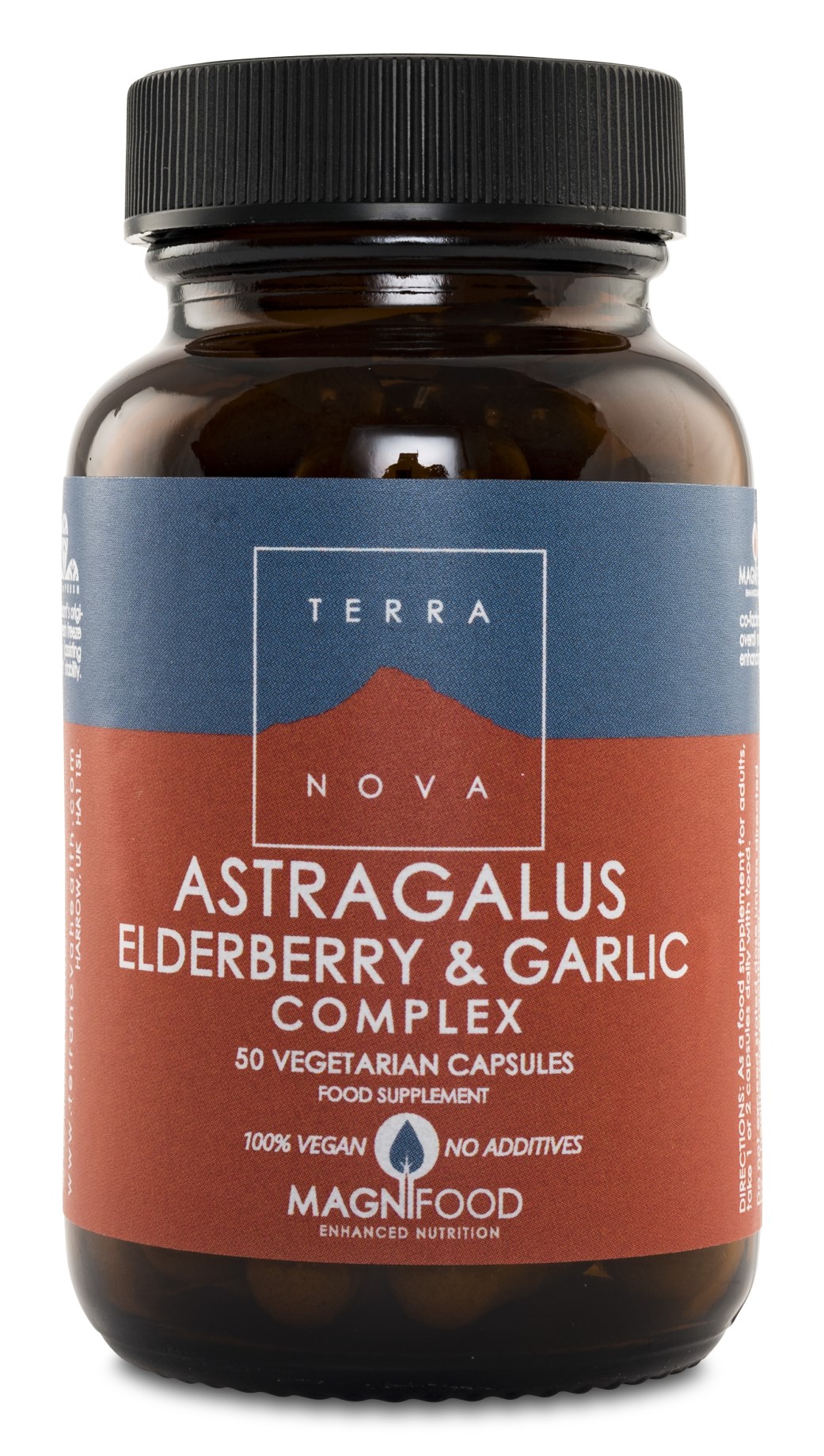 Terranova Astragalus Elderberry & Garlic Complex innehåller en unik kombination av verksamma ämnen med astragalusrot som huvudråvara. Astragalus har en urtida användning för olika ändamål. Dessutom ingår fläderbär, rika på flavonoider med antioxidanta egenskaper, samt vitlök som är välkänt använd som husmorsknep. Terranova Astragalus är ett vegetabiliskt kosttillskott med högkvalitativa extrakt.