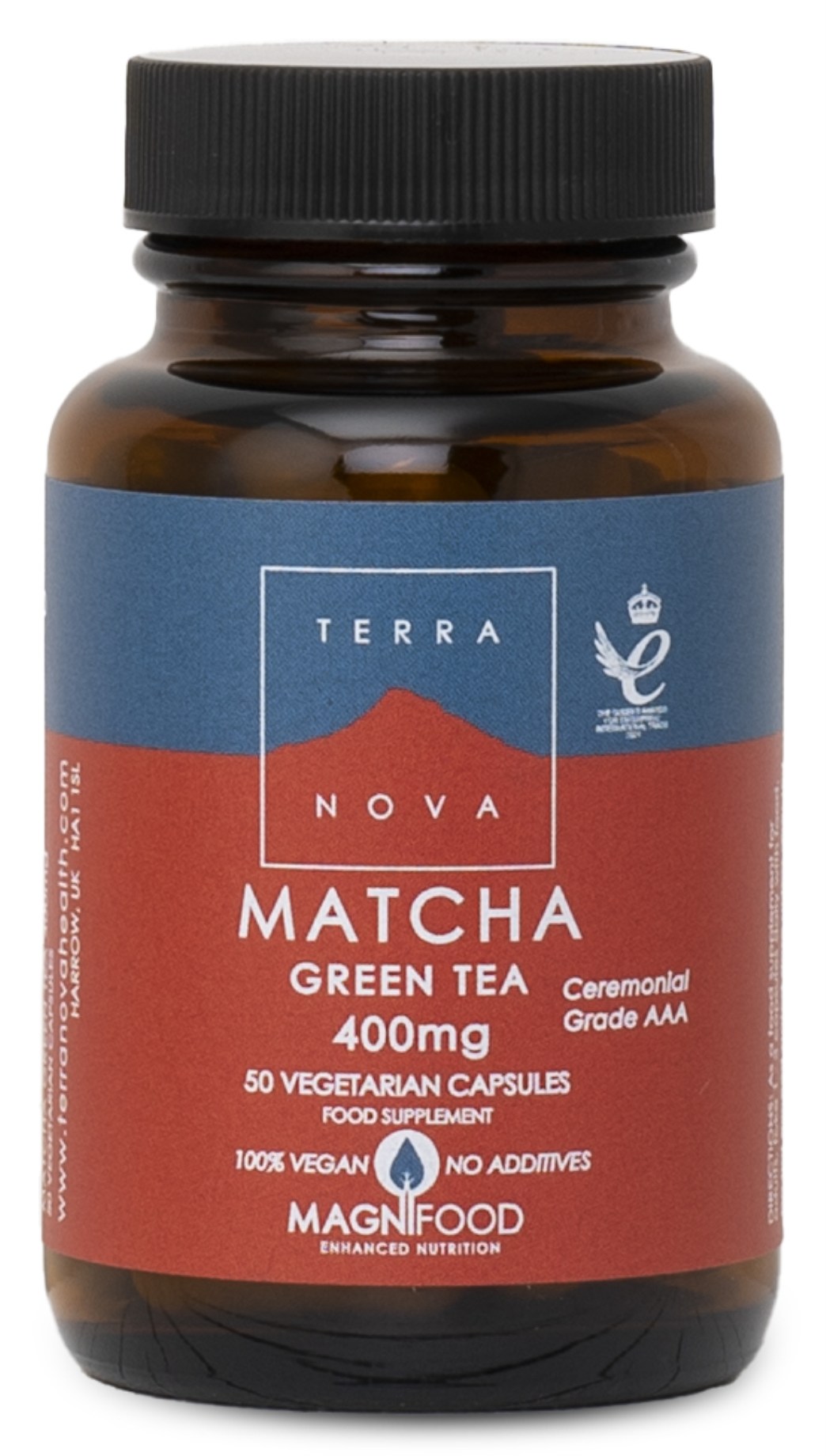 Terranova Matcha Green Tea är ett vegetabiliskt kosttillskott med grönt matcha-te, 100 % Grade AAA Matcha som varsamt fått torkas. En kapsel innehåller 400 mg matcha (Camellia sinensis), och är fri från onödiga fyllnadsmedel, bindemedel, färgämnen och gelatin. Rekommenderad dosering är 1-3 kapslar per dag tillsammans med måltid.
