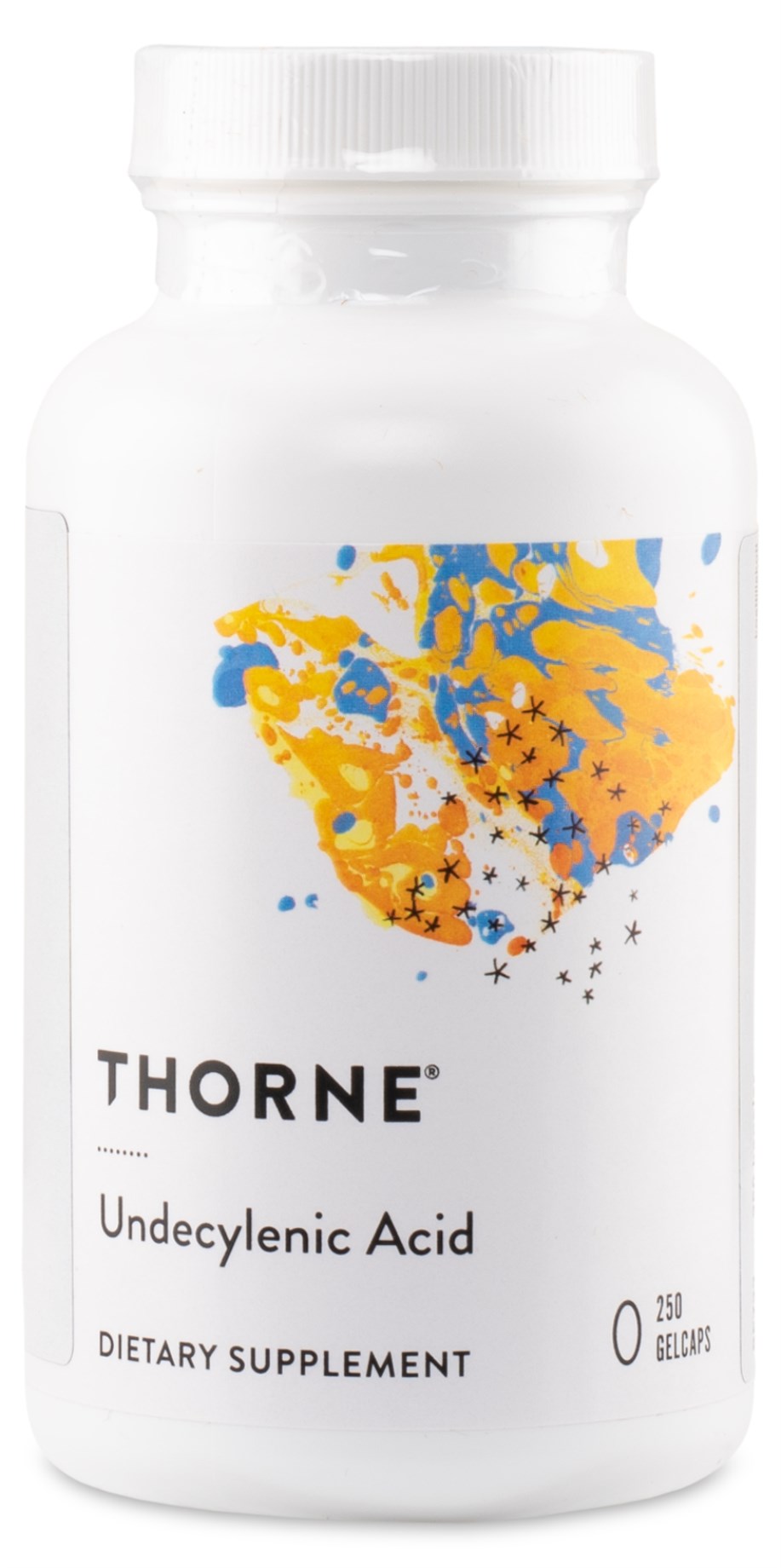 Thorne Undecylenic Acid är ett kvalitetstillskott med undekansyra (undecylensyra), en naturlig fettsyra som hjälper till att upprätthålla en hälsosam och balanserad tarmflora. Fettsyran kan användas i perioder av svamp (candida). Rekommenderad dosering är 5 kapslar 2-3 gånger per dag.