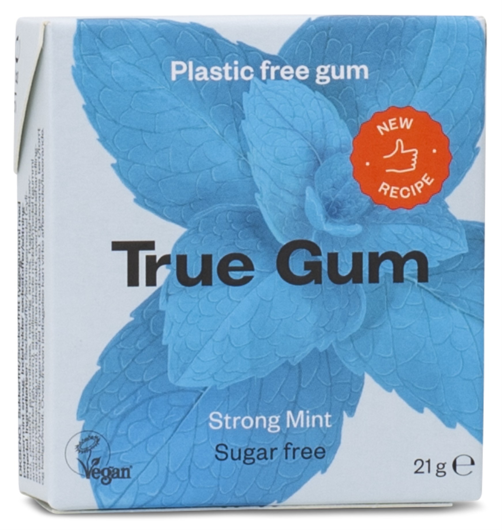 True Gum Tuggummi är ett helt naturligt och veganskt tuggummi som är plastfritt och 100% biologiskt nedbrytbart. Utan tillsatt socker, konstgjorda smakämnen och konserveringsämnen. Tuggummit är gjort på sav från träd som gummibas och innehåller växtbaserat sötningsmedel.
