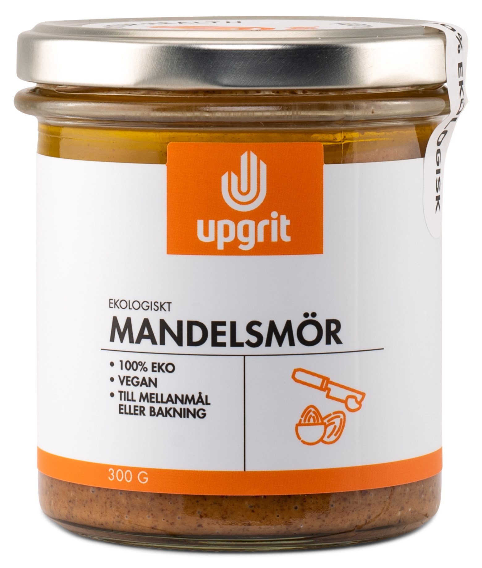 Upgrit Mandelsmör EKO är ett krämigt mandelsmör av 100 % ekologiska, rostade mandlar. Helt utan några tillsatser eller andra nötter - endast mandel av högsta kvalitet! Mandlar innehåller bland annat protein samt viktiga vitaminer och mineraler. Dessutom är de fiberrika. Detta gör mandelsmör perfekt i bakning eller till mellanmål. Ät till exempel med äppelskivor, yoghurt eller banan.