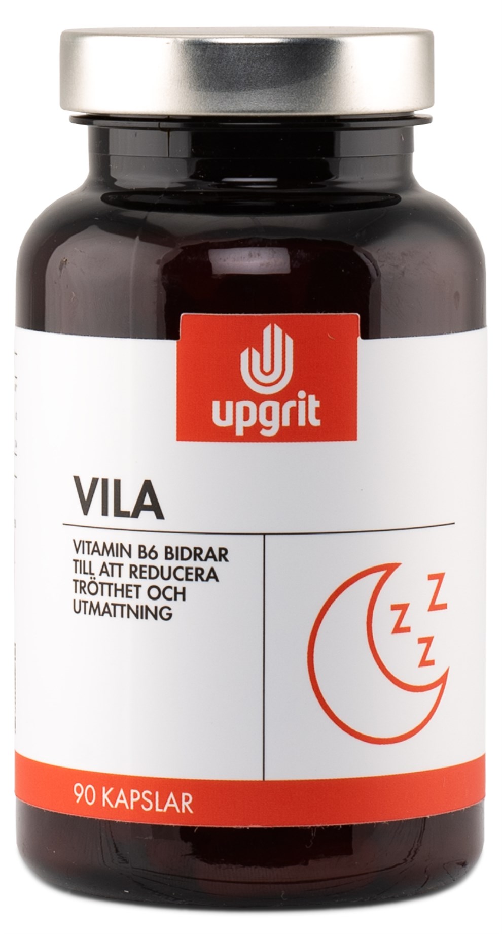 Upgrit Vila är ett kosttillskott specifikt framtaget för att hjälpa dig att komma ner i varv och slappna av på kvällen. Produkten består bland annat av magnesium och vitamin B6, vilka båda bidrar till att minska utmattning och trötthet samt till att bibehålla en normal psykologisk funktion. Vitamin B6 är även viktig för reglering av hormonaktiviteten vilken spelar en viktig roll i just reduceringen av trötthet och utmattning. Produkten innehåller också glycin som förbrukas i levern. Glycin är även viktig för avslappning.