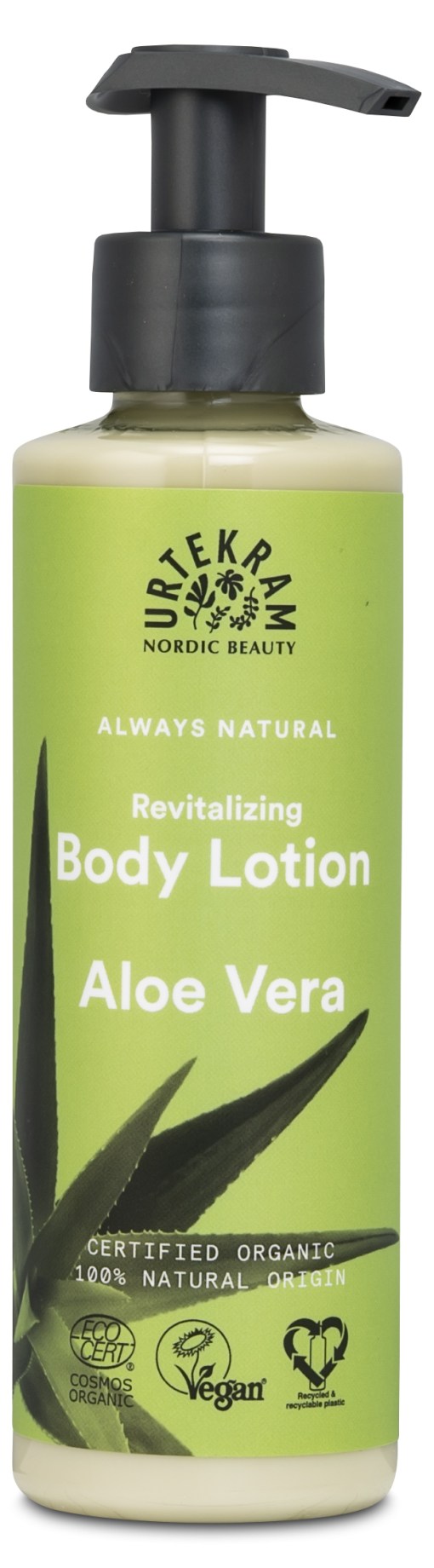 Urtekram Aloe Vera Body Lotion är fri från parabener, parfym och silkon. Innehållet är ekologiskt och varken ingredienser eller färdig produkt är testade på djur. Ett bra val för dig och din omgivning, helt enkelt!