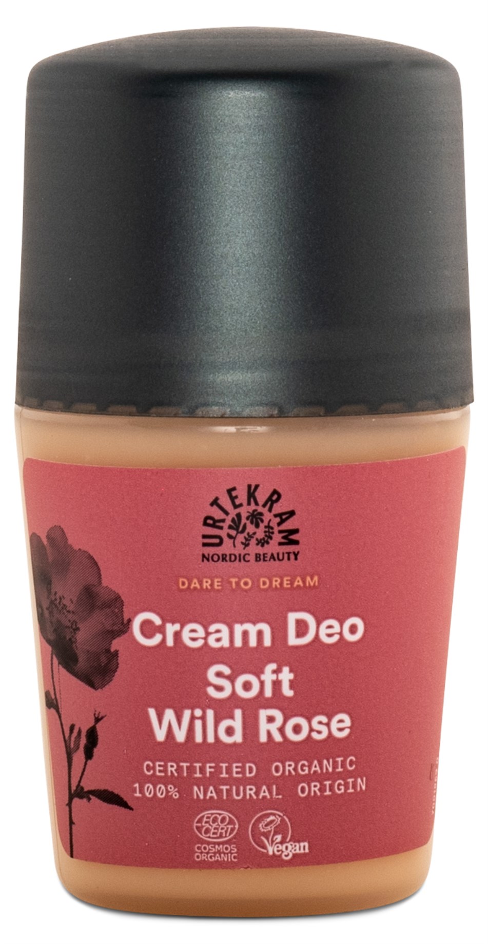 Urtekram Dare to Dream Soft Wild Rose Deo är en härlig roll-on deodorant med en behaglig doft av nyponrosor. Den innehåller naturliga ingredienser och aktiva ämnen som motverkar bakterier och dålig lukt. Berikad med aloe vera som återfuktar och håller huden mjuk under armarna. Veganvänlig och ekologiskt certifierad av Ecocert Cosmos Organic.