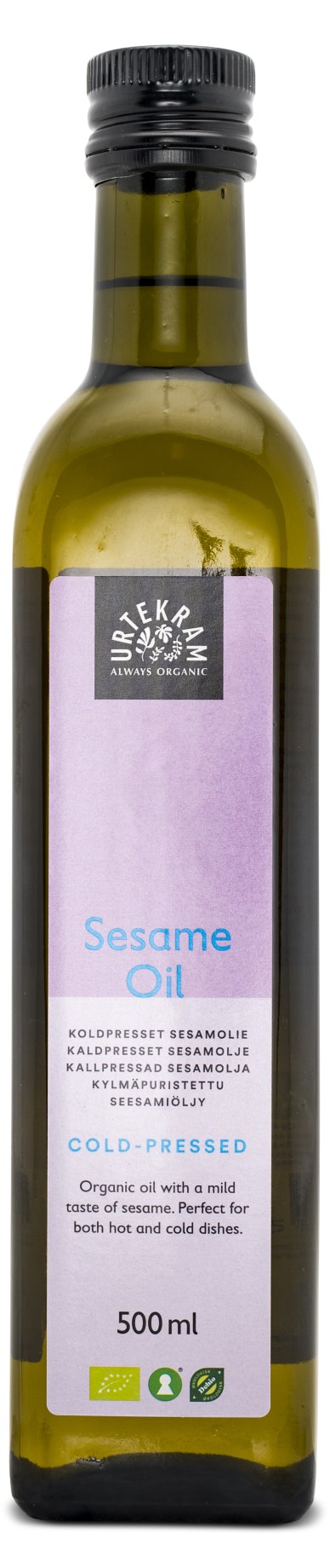 Urtekram Sesamolja är en fin olja från sesamfrön, varsamt kallpressad och ekologisk. Sesamolja är rik på fleromättade fettsyror och passar bra till kalla maträtter, så som salladsolja. Sesamolja har en god smak och används ofta i det asiatiska köket.