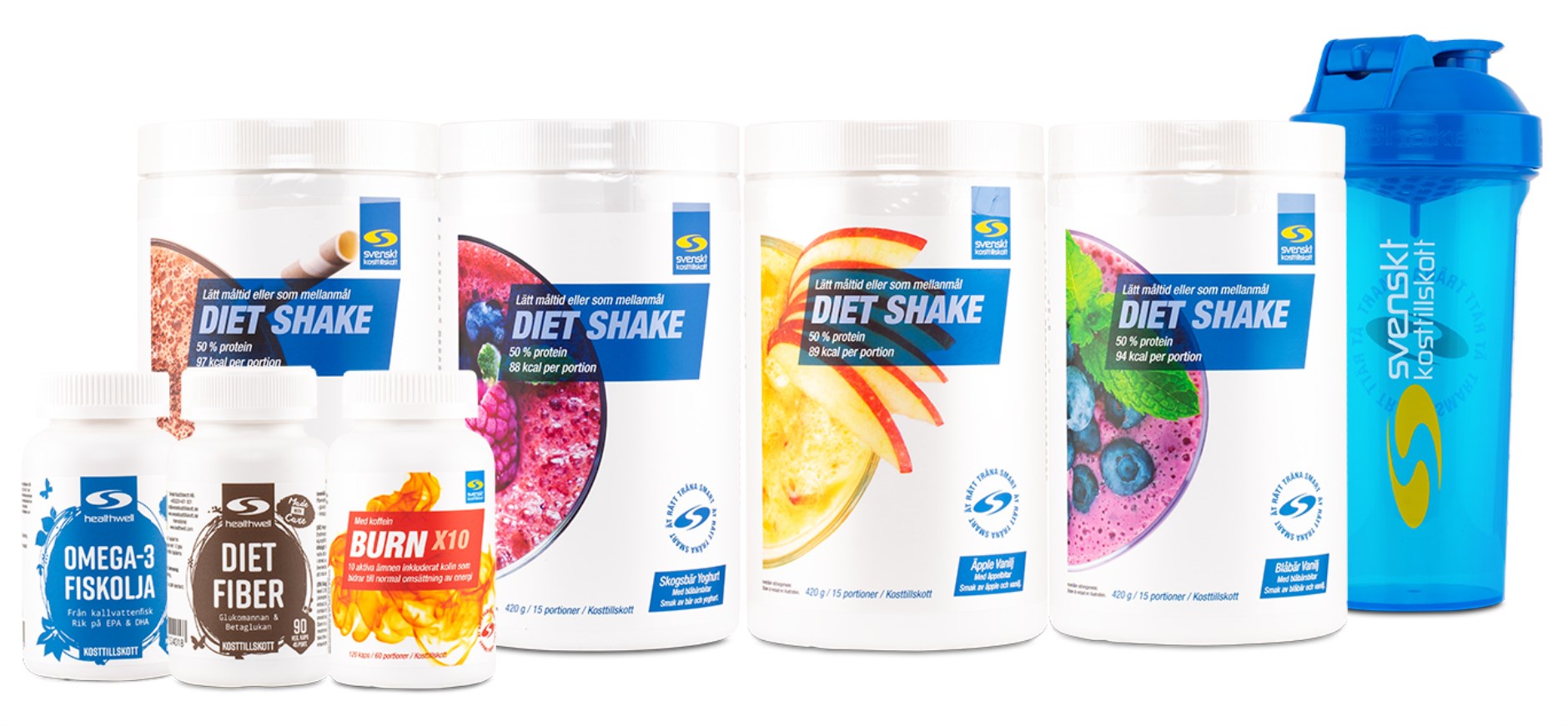 Dessutom är den oemotståndligt god och sätter guldkant på en lågkaloridiet. Diet Shake finns i flera smaker, välj mellan fräscha fruktiga smaker, exotiska smaker och fylliga chokladsmaker. Gemensamt för alla är att de dessutom innehåller goda små frukt- eller chokladbitar som ger en extra touch på smakupplevelsen.