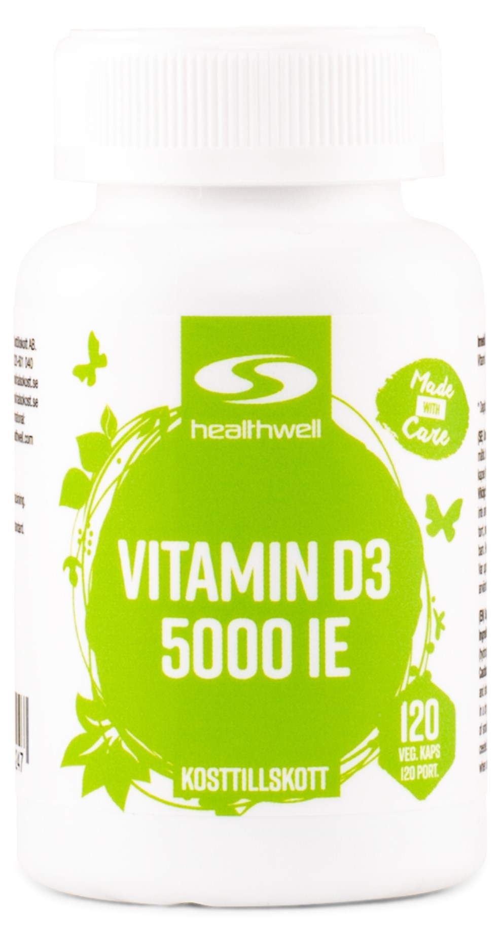 Vitamin D3 5000 IE är ett högdoserat vitamintillskott från Healthwell.