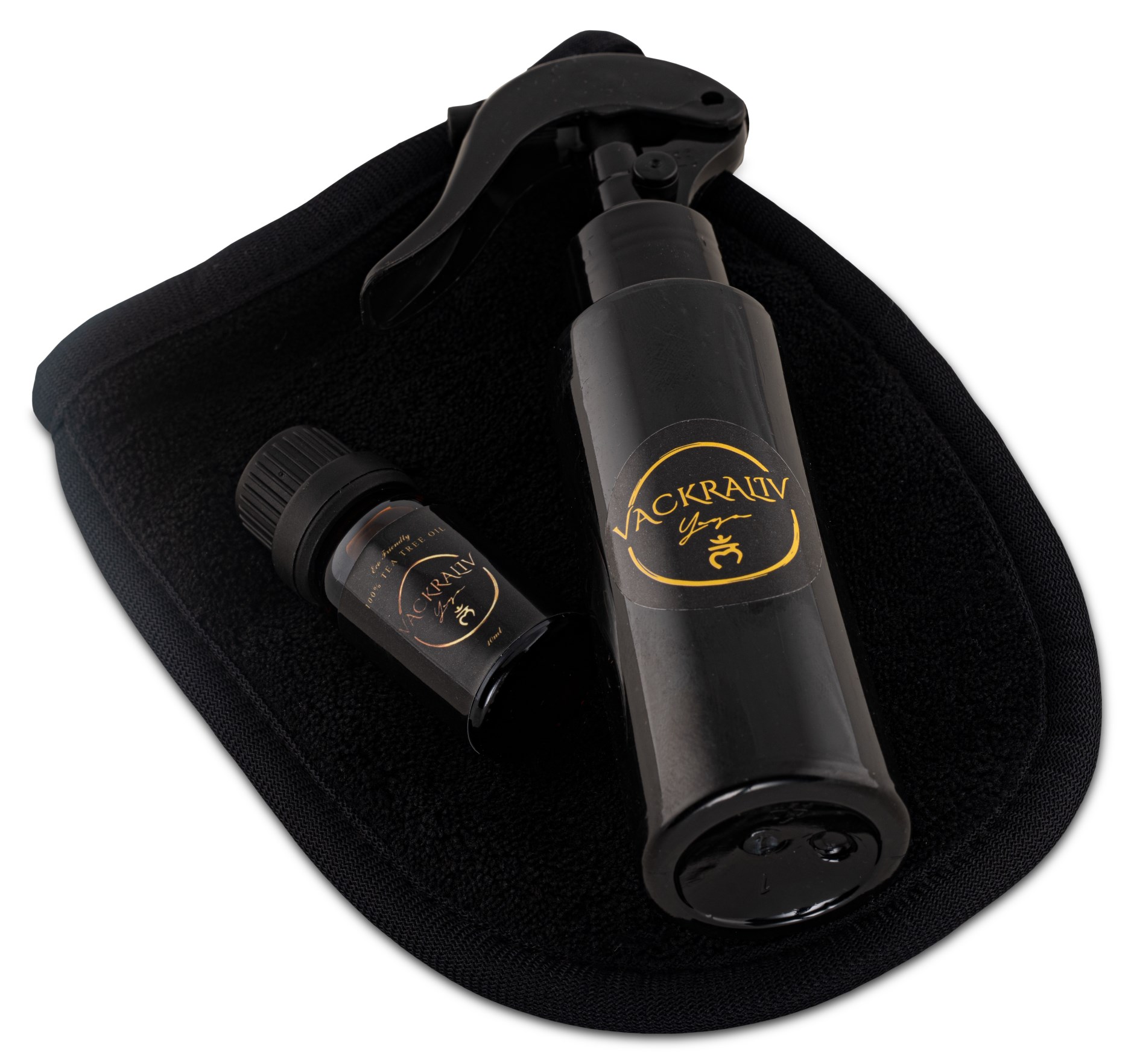 VL Yoga Cleaning Kit är en skonsam och antibakteriell rengöring för din yogamatta i PU-läder. Snäll mot både dig och miljön! Kitet innehåller en sprayflaska, Eco Tea Tree Oil samt en rengöringsvante. Spraya lite vatten tillsammans med några droppar Eco Tea Tree Oil på din rengöringsvante och rengör din matta på bara några sekunder! Perfekt att ta med i fickan på din yogaväska.