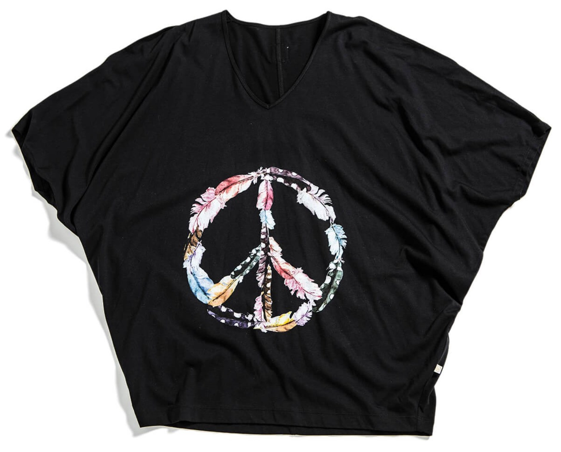 Wearmyyoga Peace Top är en topp med v-ringning i oversize modell som sitter tightare runt höften och lösare på överkroppen. Toppen har ett större akvarelltryck på bröstet i form av ett peacemärke på bröstet. Perfekt att ha på yogapasset men också till vardags.