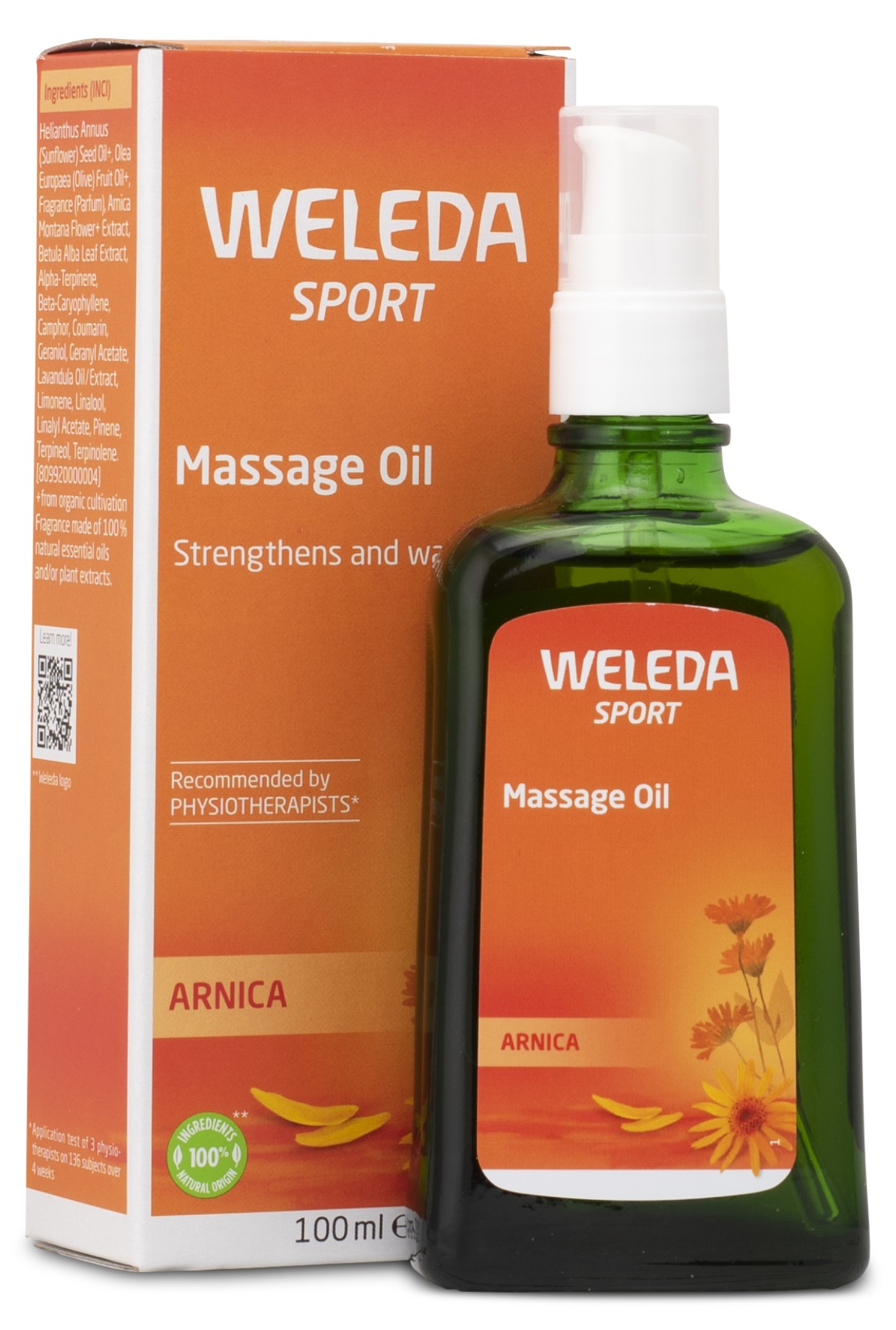 Massera in Weledas massageolja på ömmande, stela muskler eller vid fysisk aktivitet, för att sprida lite värme. Den innehåller en skön blandning av solrosolja och olivolja, samt arnika som stödjer naturliga hudfunktioner och dessutom verkar vårdande för huden.