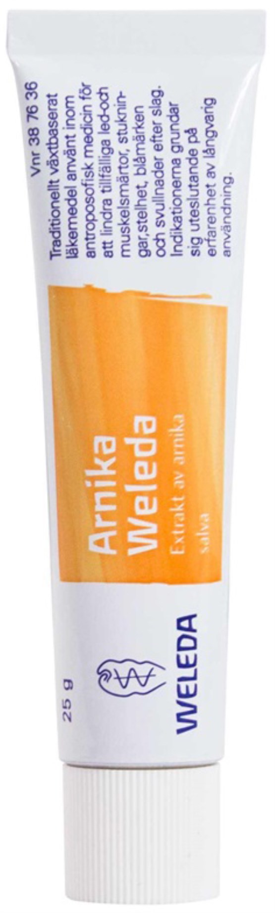 Arnikasalva innehåller 300 mg arnika per 1 g salva. Arnica kallas även slåttergubbe och det är hela plantan som används genom att man utvinner en tinktur ur örten. Arnika är ett traditionellt växtbaserat läkemedel som länge använts som lindring vid led- och muskelsmärtor, stukningar, stelhet, blåmärken och svullnader.
