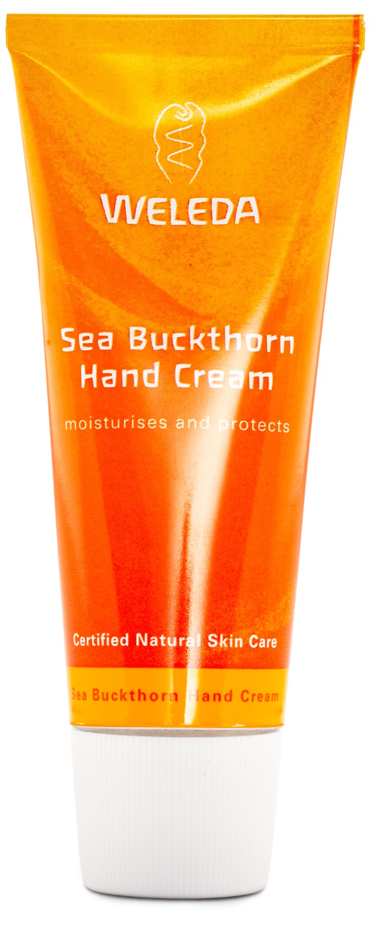 Weledas handkräm med havtorn innehåller havtornsolja och sesamolja som ger dina händer skydd och återfuktar dem. Den gör så att dina nariga händer blir mjuka igen och motverkar självsprickor. De absorberas snabbt utav huden och lämnar inte ett kladdigt resultat.