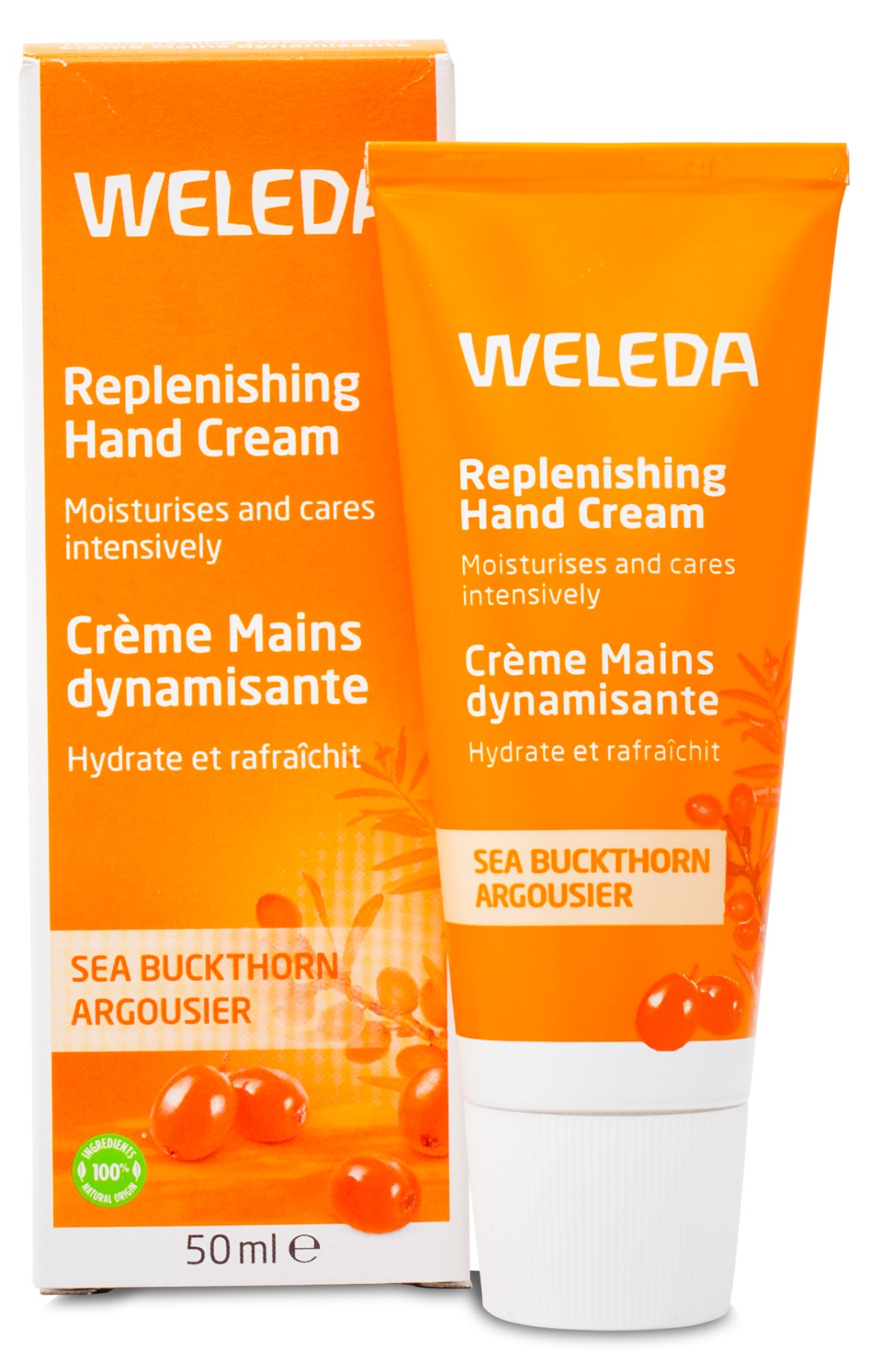 Behöver dina händer lite extra omsorg? Weleda Replenishing Hand Cream är en mjukgörande handkräm med havtorn. Krämen innehåller havtornsolja och sesamolja som ger dina händer skydd och återfuktning. Replenishing Hand Cream motverkar dessutom självsprickor och gör nariga händer mjuka igen. Den absorberas snabbt och kladdar inte.