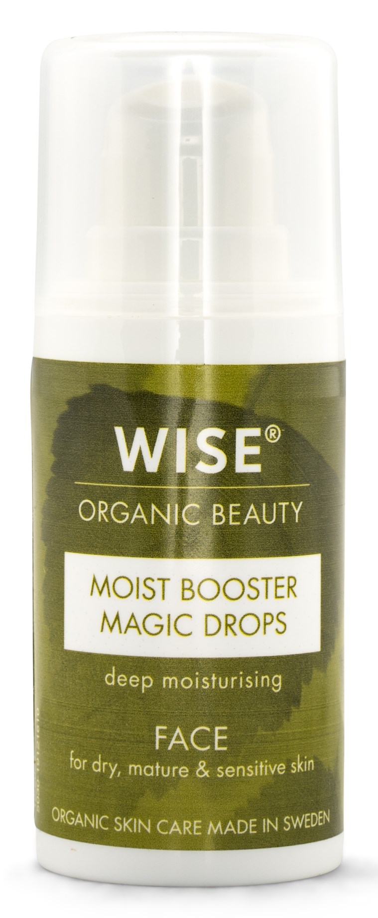 Wise Organic Moist booster är den ultimata fuktbomben med hyaluronsyra. Perfekt för dig som känner dig torr. Den fyller på fettdepåerna och stärker fuktbarriären. Hyaluronsyra har förmåga att återfukta huden och binda fukt även på djupet i de olika hudlagren. Den går även bra att ha runt ögonen för maximal återfuktning.
