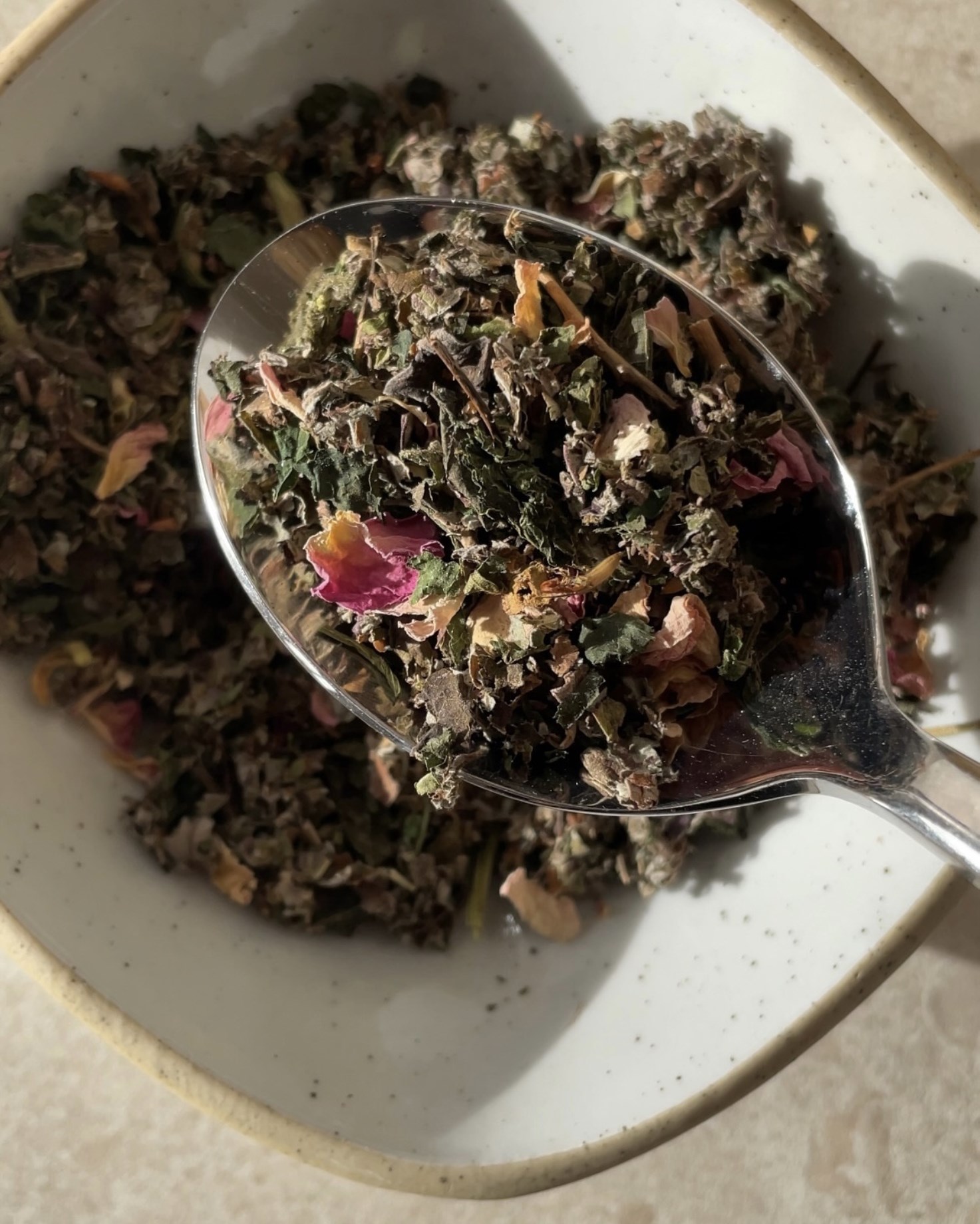Krossa försiktigt en matsked örter i en kopp eller tesil och häll över 2 dl hett vatten. Låt dra i 10 minuter och avnjut.