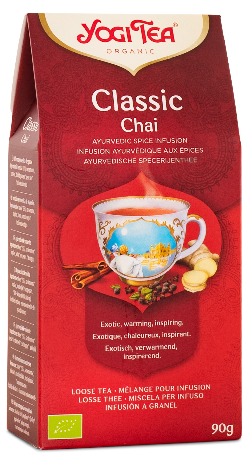 Det ursprungliga Yogi Tea ® Classic Chai receptet är en perfekt balans mellan mysig kanel, kryddig ingefära, söt kardemumma, aromatiska kryddnejlika och rejäl svartpeppar, vars unika smak är stimulerande och lugnande för våra sinnen.