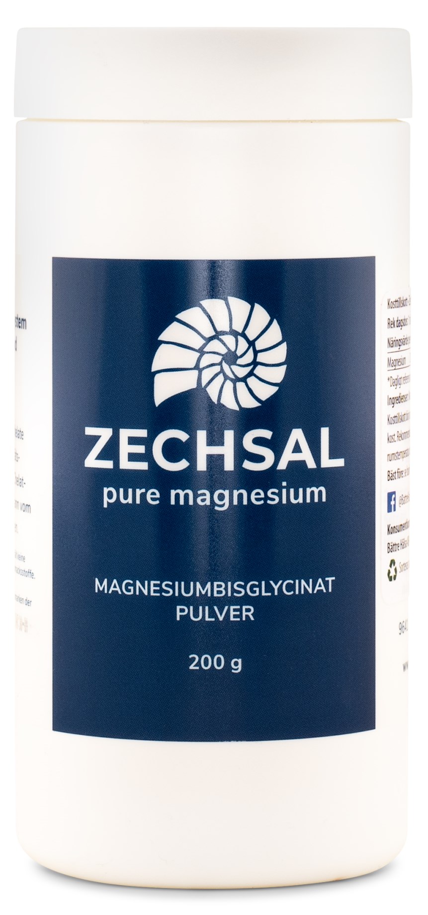 Zechsal Magnesium Bisglycinat är ett smidigt pulver med magnesiumbisglycinat. Magnesiumbisglycinat är en organisk magnesiumform som består av magnesium bundet till en aminosyra. Denna sammansättning gör att kroppen lätt kan ta upp och tillgodogöra sig magnesiumet på ett effektivt sätt. Magnesium har flera funktioner i kroppen, bland annat bidrar det till minskad trötthet och utmattning samt till nervsystemets normala funktion. Just magnesiumbisglycinat har fördelen att den även kan nå hjärnan, där den kan ha en avslappnande effekt. Zechsal Magnesium Bisglycinat är enkelt att dosera och inta, med en dagsdos på 1 tsk som du blandar i valfri dryck.