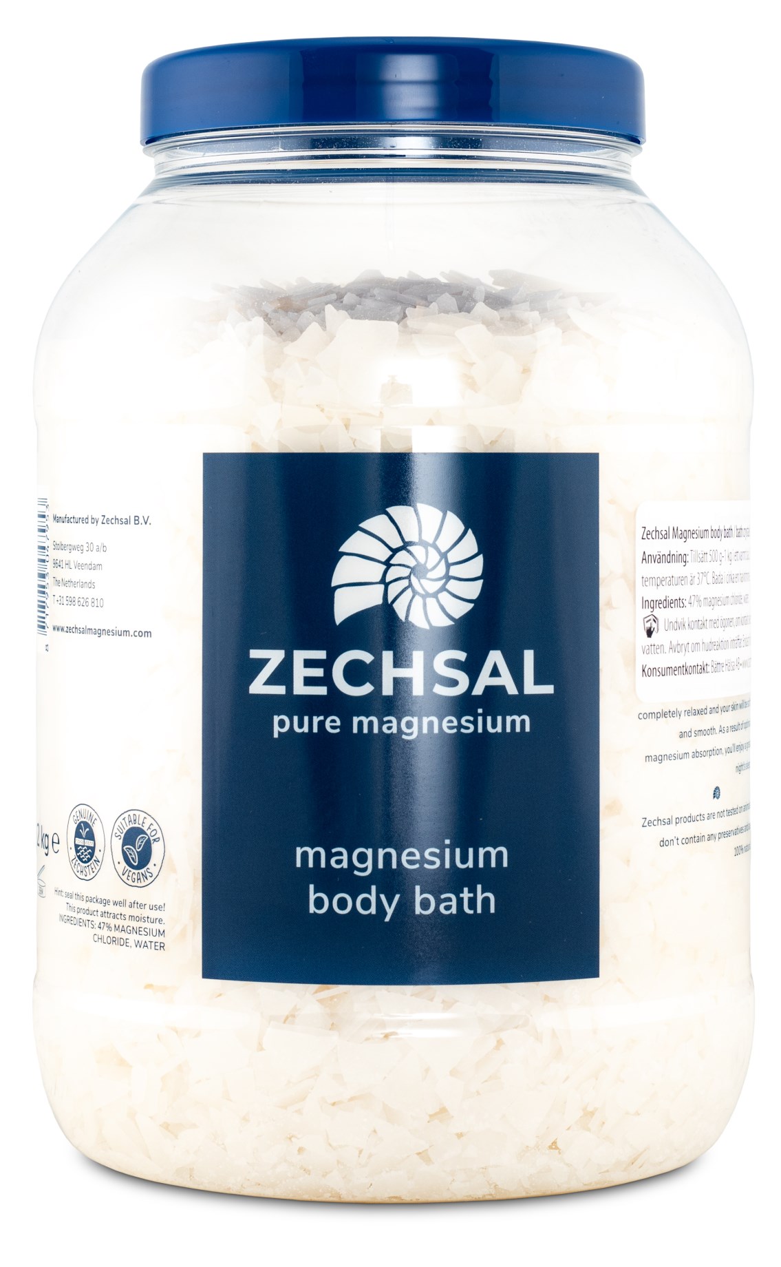 Zechsal Magnesium Kroppsbad är rena magnesiumbadkristaller som är perfekt för ett härligt och avslappnande bad som även lugnar huden. Passar också för fotbad om du inte har badkar. Magensiumkristallerna är 100 % naturliga och har 47 % koncentration. En hink på 2 kg räcker för 4 stycken kroppsbad eller 16 fotbad. För total avkoppling och effektivt magensiumupptag!