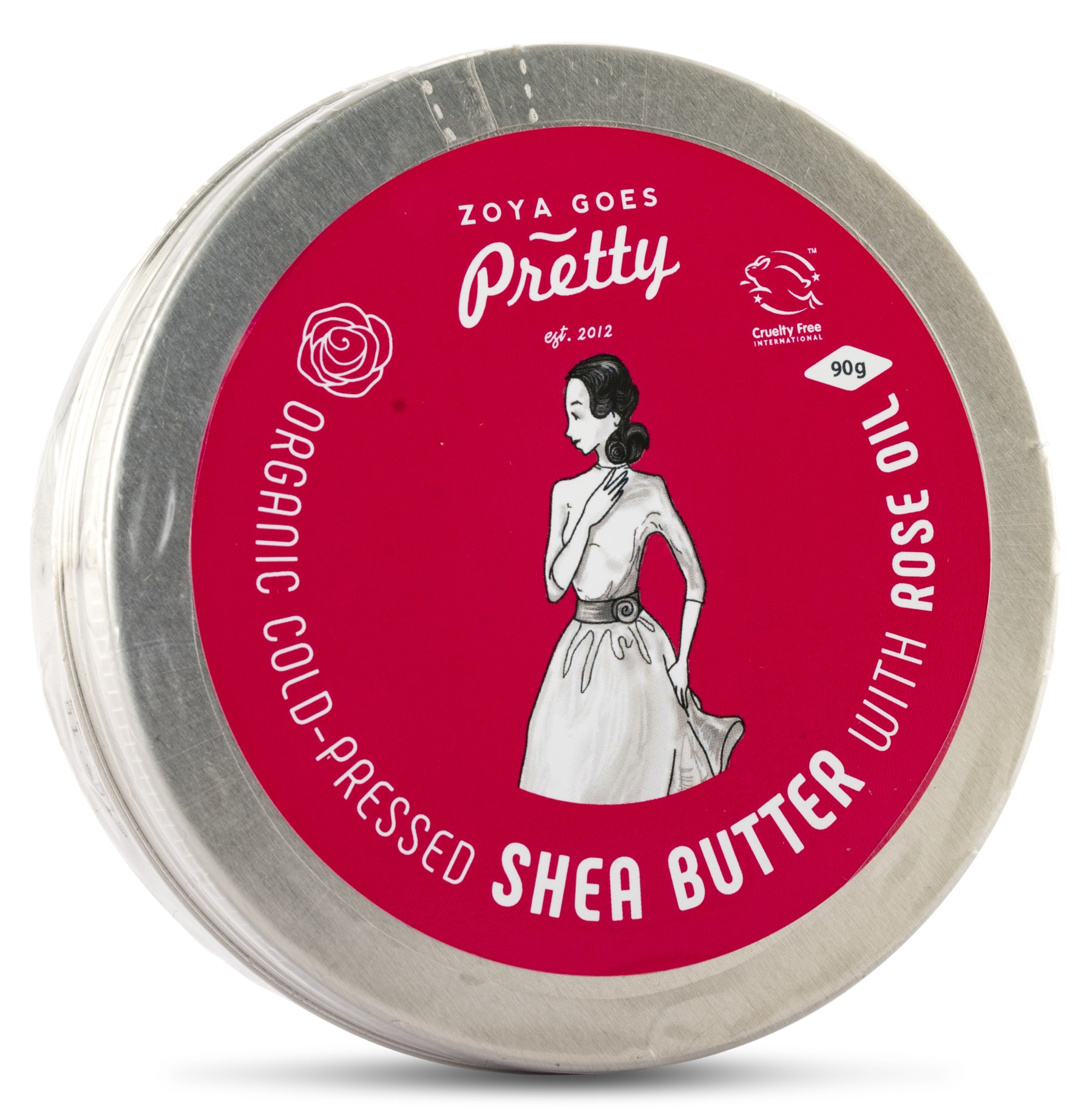Shea butter & Rose oil från Zoya goes Pretty är en kraftigt återfuktande bodybutter med bara rent innehåll, utmärkt för dig med känslig hy, torr hy, mogen hy eller normal/blandhy. Använd som kroppslotion till både kropp och ansikte dagligen eller vid behov.